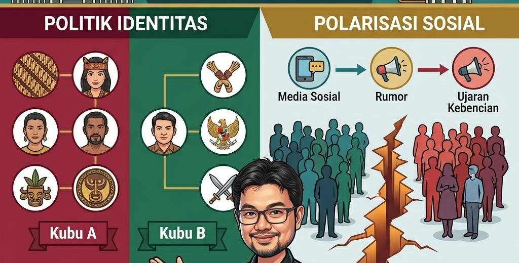 Indonesia memiliki struktur sosial yang sangat beragam. Keragaman ini merupakan kekuatan bangsa, tetapi juga dapat menjadi titik rawan bila dipolitisasi. Dalam sistem demokrasi elektoral yang kompetitif, kandidat atau kelompok politik sering mencari cara paling cepat untuk mengonsolidasikan dukungan. Salah satu cara yang paling efektif adalah memainkan identitas yang sudah melekat dalam kehidupan masyarakat. Sentimen identitas lebih mudah membangkitkan emosi dibandingkan diskusi panjang tentang kebijakan publik.